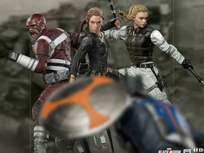 Zum Marvel Blockbuster „Black Widow“ kommt diese offiziell lizenzierte Statue aus Resin. Die im Maßstab 1/10 gehaltene Statue ist ca. 20 x 16 x 11 cm groß und kommt mit passender Diorama-Base.
