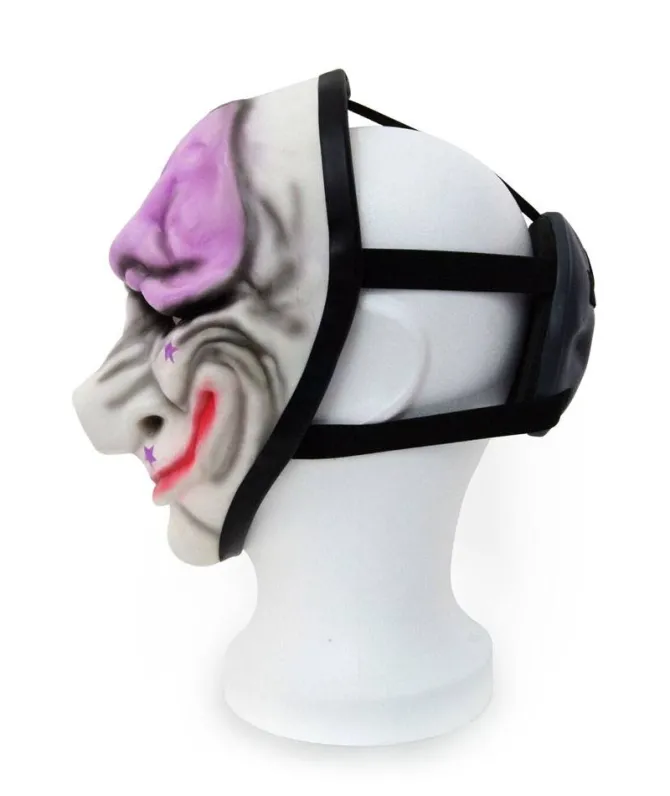 Hoxton ist einer der vier spielbaren Charaktere in Payday und Dallas´ Bruder in der Fortsetzung Payday 2. Mit dieser hochwertigen Maske aus Vinyl bist nun endlich du an der Reihe, wie ein echter Bankräuber auszusehen. Sie zeigt seine weiße Maske mit pinken Sternen und besitzt ein elastisches Band, um einen festen Halt zu gewährleisten.